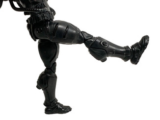 Hinged Ball Jointed Head - allows you to swivel the head 360 degrees and tilt the head back and forth. Ball Hinged Shoulders - gives the arm 360-degree rotation and also the ability to raise and lower the arm. Upper Bicep Swivel - This cut lets you turn the whole arm below the cut 360 degrees. Double Jointed Elbows - this allows you to bend the arm back to have the hands near the shoulders. Swivel Hinge Wrists - allows you to turn his wrists in a full 360-degree circle while also bending them up and down. Ab Crunch - this cut lets you be able to bend the figure front and back at the Abs. Waist Swivel - this lets you be able to turn the figure around 360 degrees at the waist. Ball Jointed Legs - This allows the legs to move out to the side along with some front and back motion. Upper Thigh Swivel - the leg can rotate around a full 360 degrees. Double Jointed Knees - joint allows you to bend the leg itself all the way back to the butt of the figure. Hinged Ankles with rockers - The ankle hinge allows you to bend the foot front and back. The rockers allow you to rock the ankles towards the outside and inside of the legs of the figure.