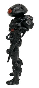 Taking Black Manta out of the box we can see all the detail they have put into the figure. There is not one part of this figure that doesn’t have some kind of molded detail. it’s nice to see since this figure is just black plastic with a hint of grey on it and some red paint.
